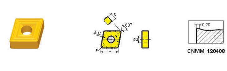 CNMM120404(YBC251):具有特殊強度與韌性刀刃的基體與MT-TiCN、厚Al2O3、TiN涂層的極佳組合,是鋼材加工的通用牌號,適應(yīng)于鋼、鑄鋼和不銹鋼的半精加工、精加工等。